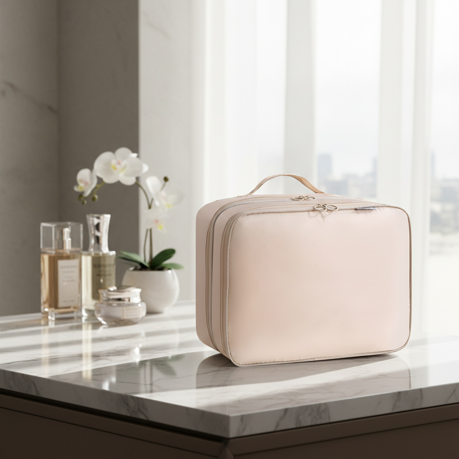 ● ポータブルなハンドル付きで、バッグ単体でも持ち歩きやすく、スーツケースの中でも省スペースを実現します。
